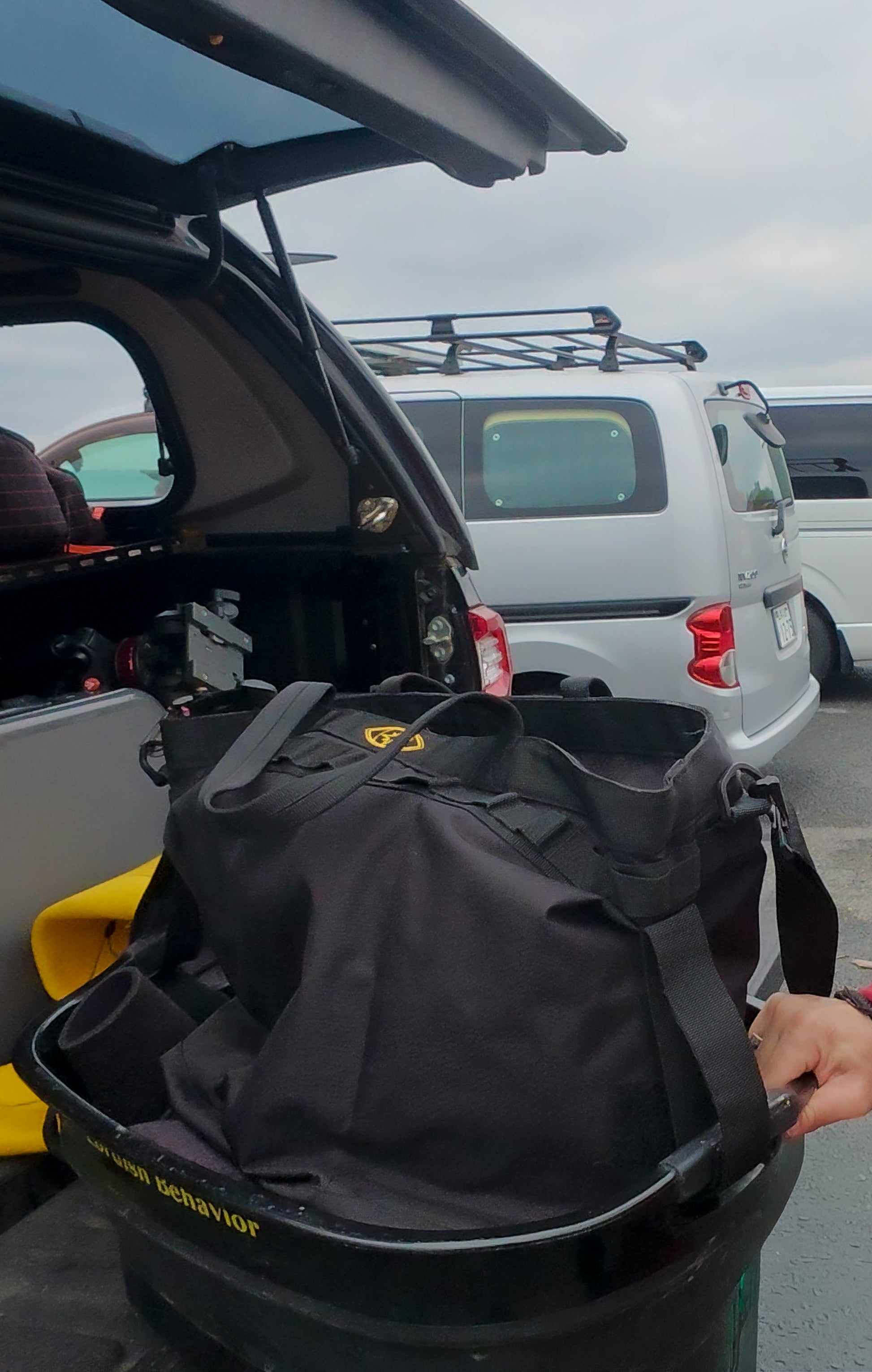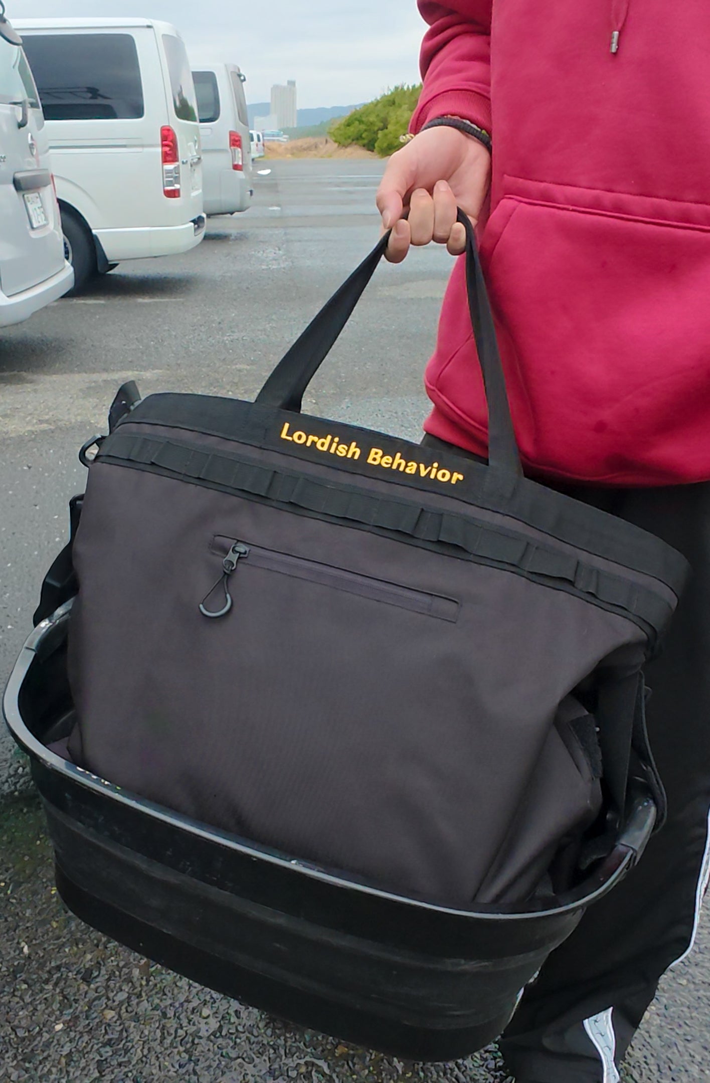 ブランドのアイコンである**「LB tub」と、この「Wet Bag」が完全連結。** 濡れたウェットスーツや泥だらけのギアを詰め込んだtubの上に、PCや貴重品を守るWet Bagをスマートにセットアップ。両手を自由にし、移動のストレスをゼロにします。